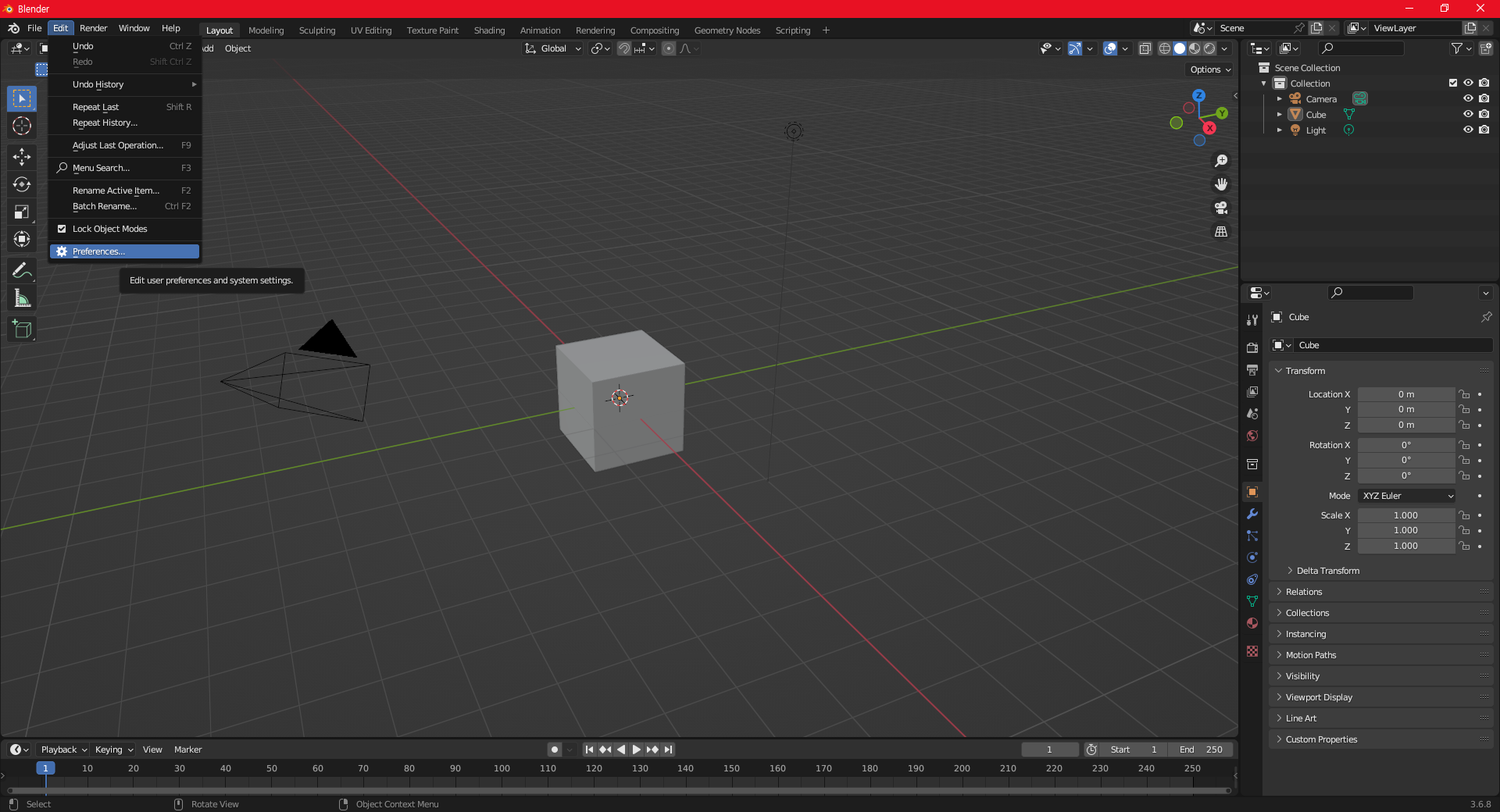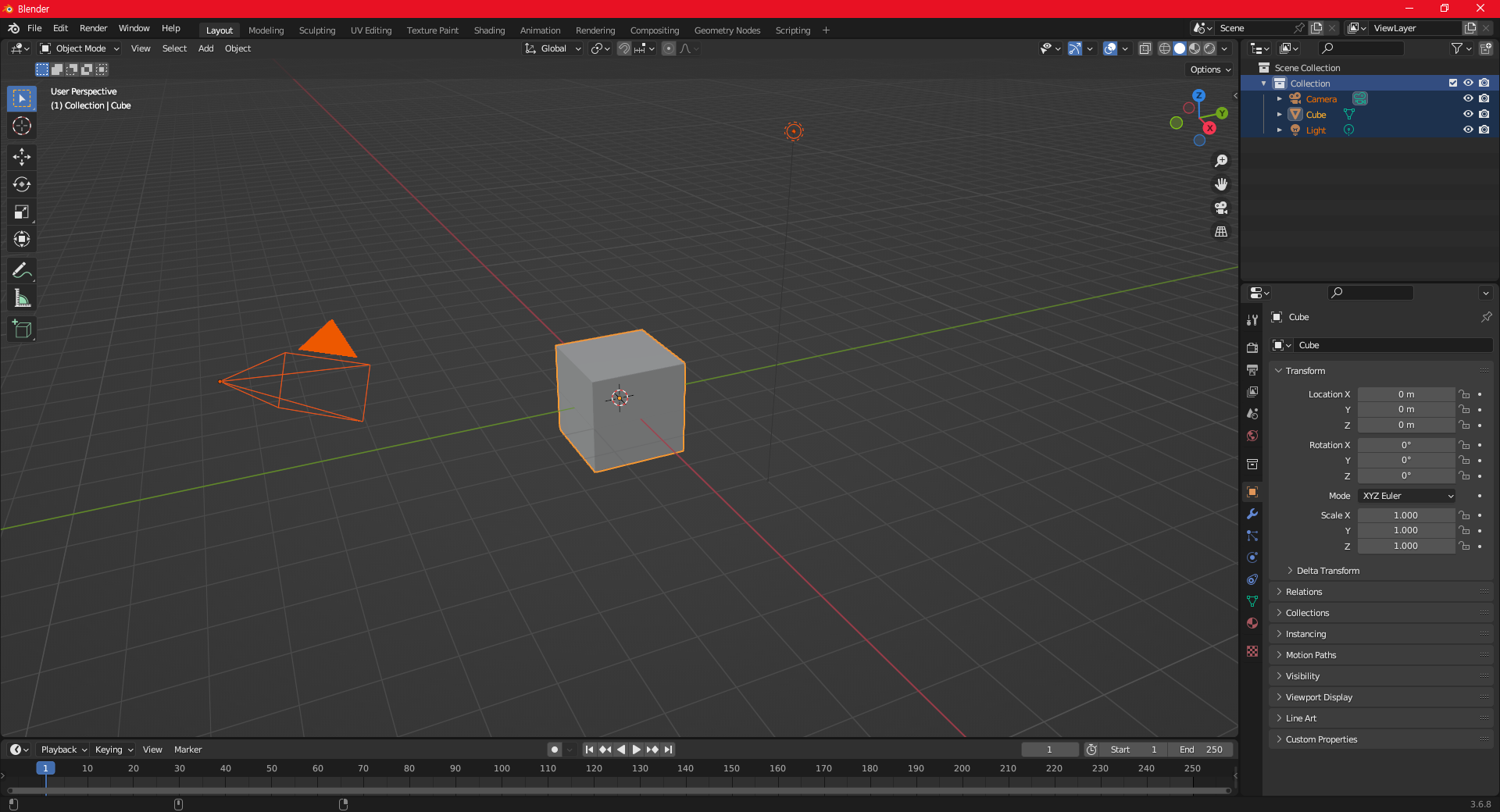 오른쪽 상단의 Collection부터 Light까지의 선택하시고 키보드의 'X' 키를 누르게 되면 삭제되며, 화면의 오브젝트들이 지워집니다.