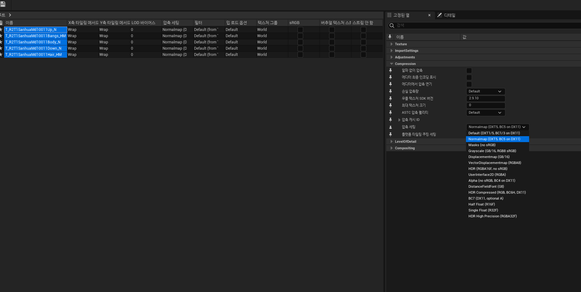 압축 세팅을 NormalMap으로 설정합니다.