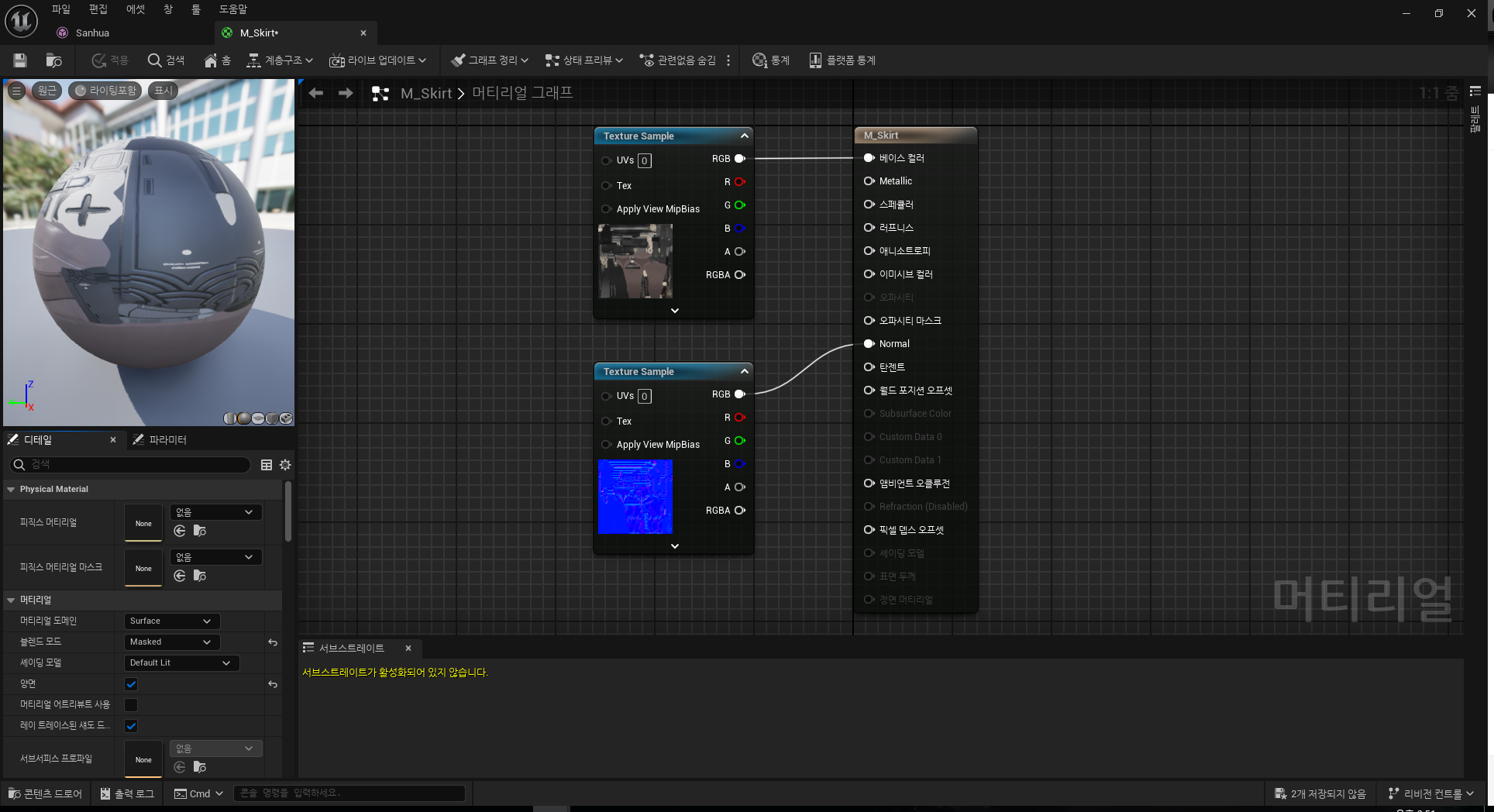 Blender에서 설정된 머티리얼의 텍스쳐를 보고 언리얼 엔진의 머티리얼에서 같은 텍스쳐를 지정해줍니다.