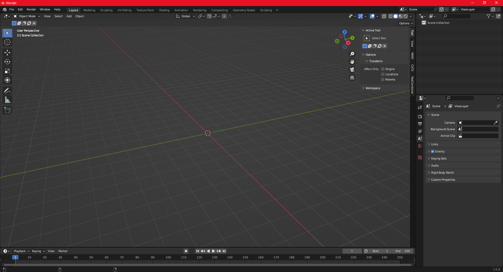 화면을 누르시고 키보드의 'N' 키를 누르면, 다음과 같이 화면의 오른쪽 구석에 툴 모음이 나타나며, 그 중 앞에서 설치한 Cats Blender Plugin과 Material Combiner가 보입니다.