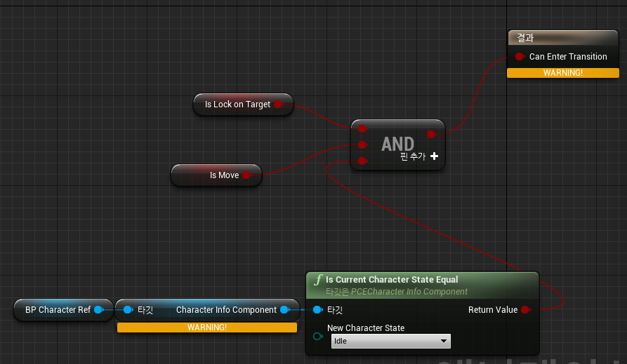 애니메이션 블루프린트의 트랜지션 룰을 설정할 때 위와 같이 ThreadSafe 관련 경고가 뜬다면 아래와 같이 해결하면 됩니다.