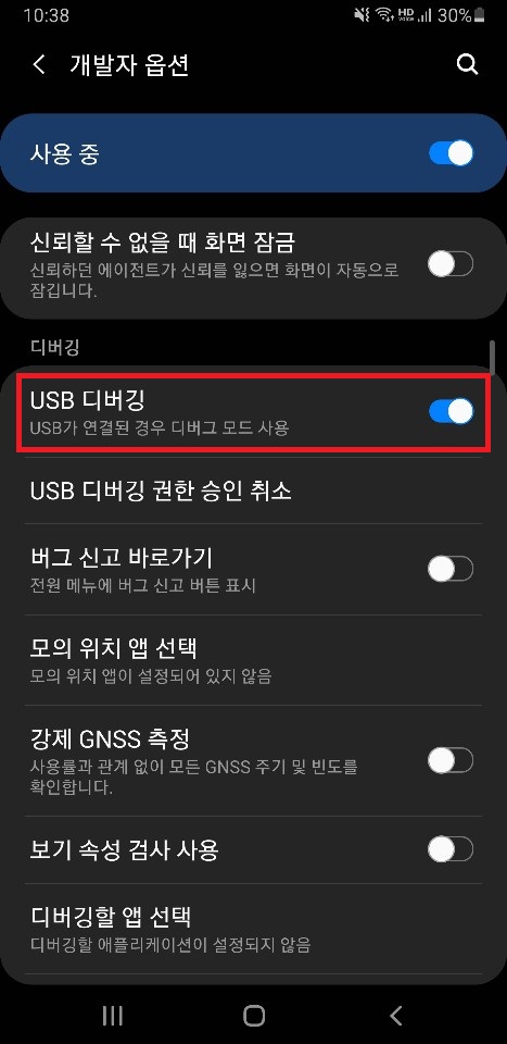 2. USB 디버깅 활성화